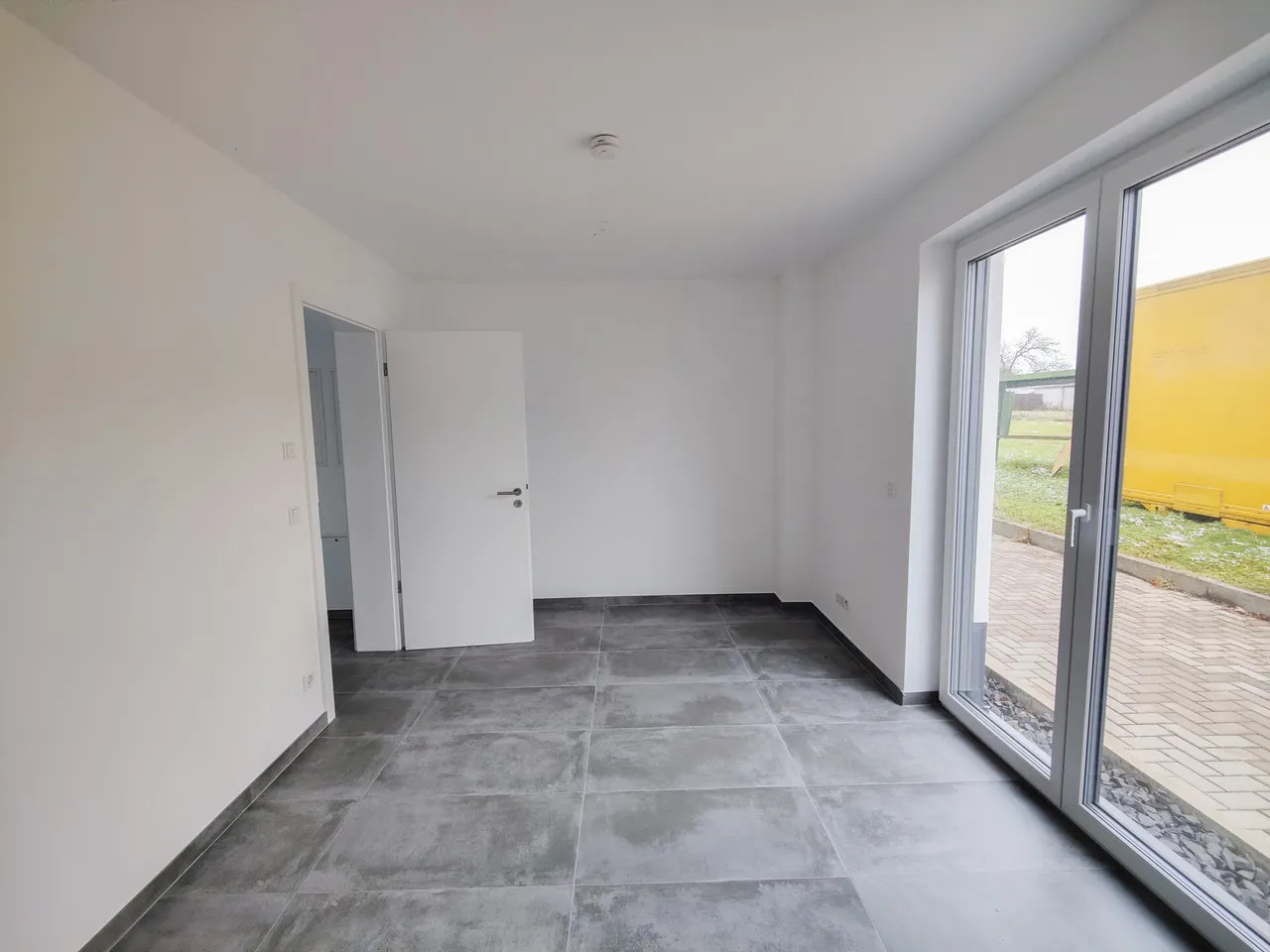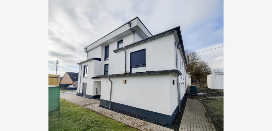 Diese neuwertige Eigentumswohnung befindet sich im Erdgeschoss eines 5-Parteienhauses, welches ca. 2021 in massiver Bauweise im Bauhausstil errichtet wurde. Das Gebäude ist nicht unterkellert. Die Wohnung verfügt jedoch über einen eigenen Abstell-/Waschraum. Die Wohnfläche ist barrierefrei, sodass diese besonders für Senioren ideale Voraussetzungen bietet, bis ins hohe Alter darin wohnen bleiben zu können. Über die geräumige Diele gelangt man zu den jeweiligen Zimmern. Das Wohnzimmer verfügt über eine offene Küche und Zugang zur eigenen Terrasse. Von dieser gelangt man weiter in den separaten Wasch- bzw. Abstellraum. Neben dem Wohnzimmer sind noch 2 weitere Zimmer, ein möbliertes Bad und ein Gäste-WC vorhanden. Die ETW ist besonders für Käufer mit gehobenen Ansprüchen geeignet, die gern in den eigenen vier Wänden wohnen und zukunftssicher aufgestellt sein möchten.