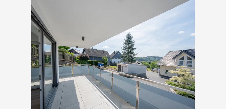 Diese hochwertig ausgestattete Neubauwohnung aus dem Jahr 2024 vereint modernen Wohnkomfort mit nachhaltiger Technik und einem außergewöhnlichen Wohlfühlfaktor. Auf rund 91 m² Wohnfläche im Hochparterre bietet sie ein durchdachtes Raumkonzept, das sowohl funktional als auch ästhetisch überzeugt. Der offene Wohn- und Kochbereich empfängt Sie mit viel Tageslicht und schafft durch große Fensterfronten eine freundliche, einladende Atmosphäre. Von hier aus gelangen Sie direkt auf die großzügige Terrasse, die nicht nur zum Verweilen im Freien einlädt, sondern auch mit einem malerischen Ausblick auf das nahegelegene Bergpanorama begeistert – ein echtes Highlight für Naturliebhaber und Ruhesuchende. Zwei gut geschnittene Schlafzimmer bieten flexible Nutzungsmöglichkeiten – ob als Elternschlafzimmer, Kinderzimmer oder Homeoffice. Zwei moderne Badezimmer, jeweils mit bodengleicher Dusche, sorgen für maximalen Komfort im Alltag – ideal auch für Familien oder Paare mit Gästen. Besonders hervorzuheben ist die integrierte eigene Luftwärmepumpe, die im Hauswirtschaftsraum untergebracht ist – eine zukunftsorientierte Lösung, die für niedrige Energiekosten und umweltbewusstes Heizen steht. Ein Garagenstellplatz rundet das Angebot ab und sorgt für komfortables, sicheres Parken direkt am Haus. Durch den Erstbezug profitieren Sie zudem von einem makellosen Zustand und modernster Ausstattung – alles ist bereit für den Einzug.