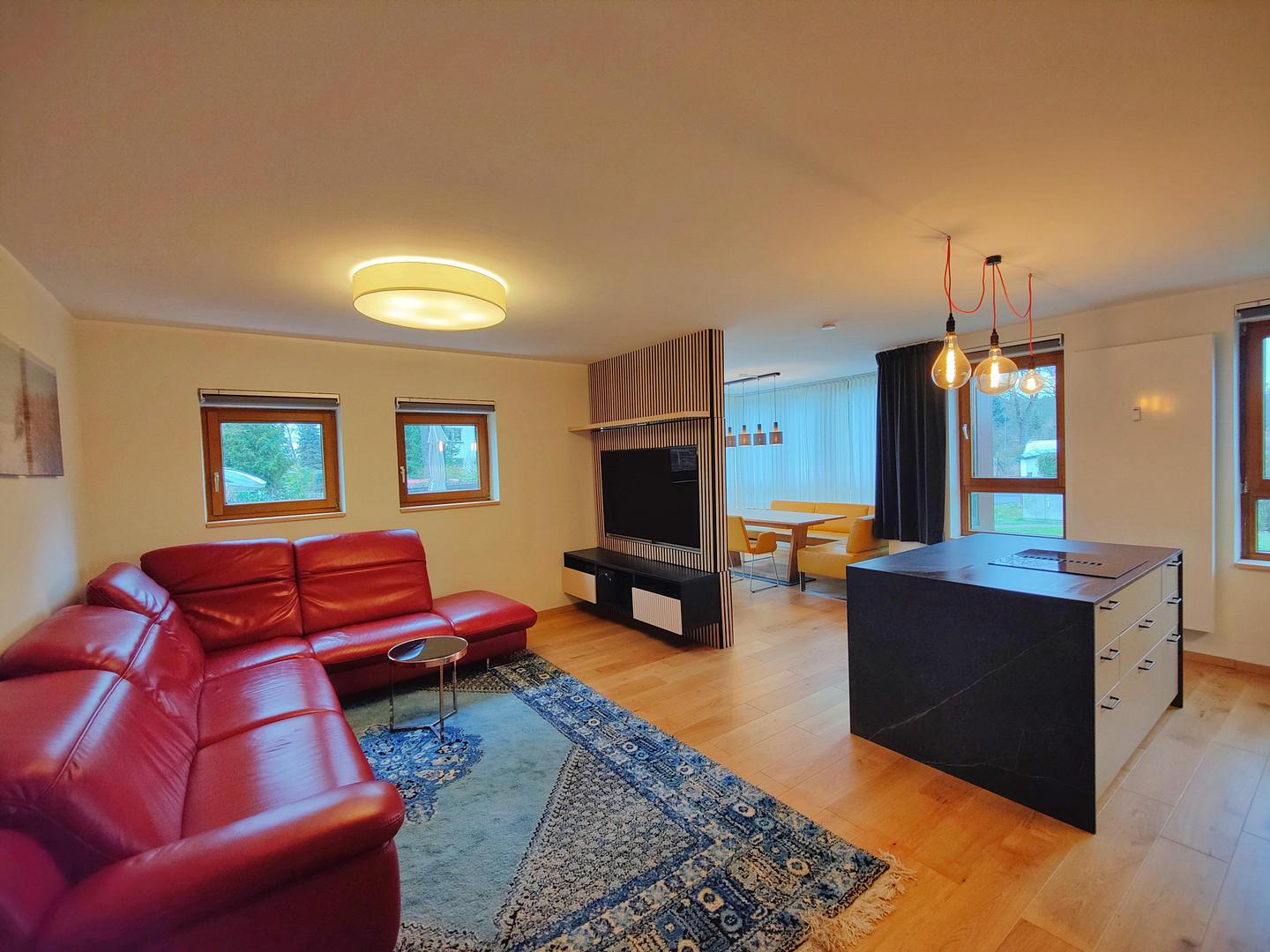 Mittenwalde, gelegen im Ortsteil Motzen, bietet eine gute Infrastruktur mit Einkaufsmöglichkeiten und Dienstleistungen des täglichen Bedarfs. Die Anbindung an das öffentliche Verkehrsnetz ist gegeben, was Ausflüge in die Umgebung oder Fahrten in nahegelegene Städte (Berlin ca. 40 min) ermöglicht. Die Wohnung liegt direkt am Golfplatz Motzen und ist etwa 200m von einer öffentlichen Badestelle des Motzener Sees entfernt. Das Strandbad Motzen erreicht man fußläufig in 10 Minuten.