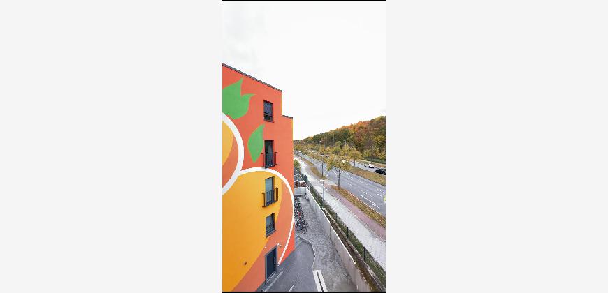Die Wohnung befindet sich in Berlin-Biesdorf in einer verkehrsgünstigen Lage mit direkter Anbindung an die B1/B5 Ausfahrt zur Autobahn.