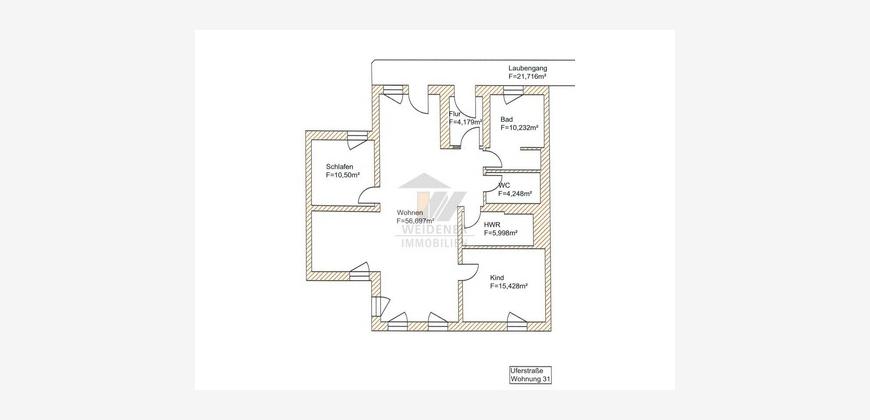 Hinweis: Die Wohnung befindet sich im 3. Obergeschoss. Die Bilder stammen aus einer Wohnung mit identischem Grundriss im 1. Obergeschoss.