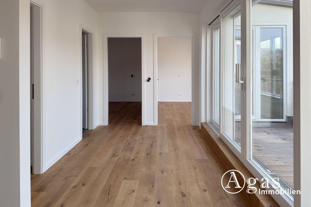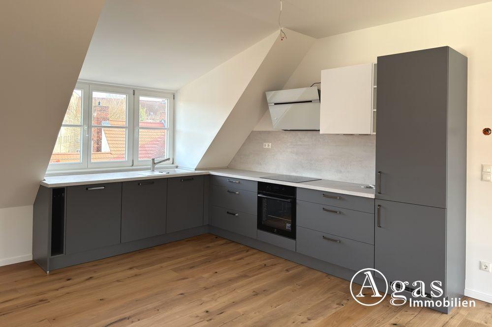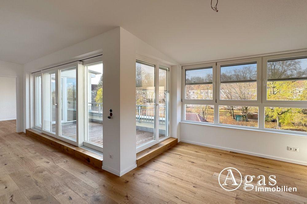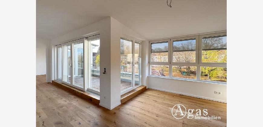 Der großzügige, offen gestaltete Wohn- und Essbereich mit Zugang zur sonnigen Dachterrasse lädt zu entspannten Stunden oder geselligen Abenden ein – ob beim Frühstück in der Morgensonne oder beim Ausklingenlassen des Tages mit Blick ins Grüne. Die angrenzende hochwertige Einbauküche fügt sich stilvoll in das Wohnkonzept ein und ist mit modernen Elektrogeräten sowie großzügigen Stauraumlösungen ausgestattet – ideal für Kochbegeisterte wie auch für den Alltag.