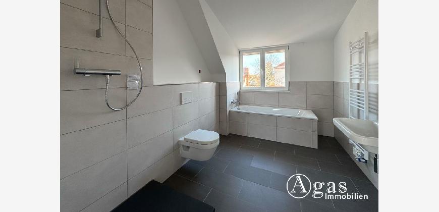 Abgerundet wird das Angebot durch ein modernes, gefliestes Badezimmer mit Tageslicht, einen möglichen PKW-Stellplatz direkt am Haus sowie durch eine hochwertige Ausstattung (u.a. Fußbodenheizung, moderne Fenster mit guter Wärmedämmung und Echtholzpakett).