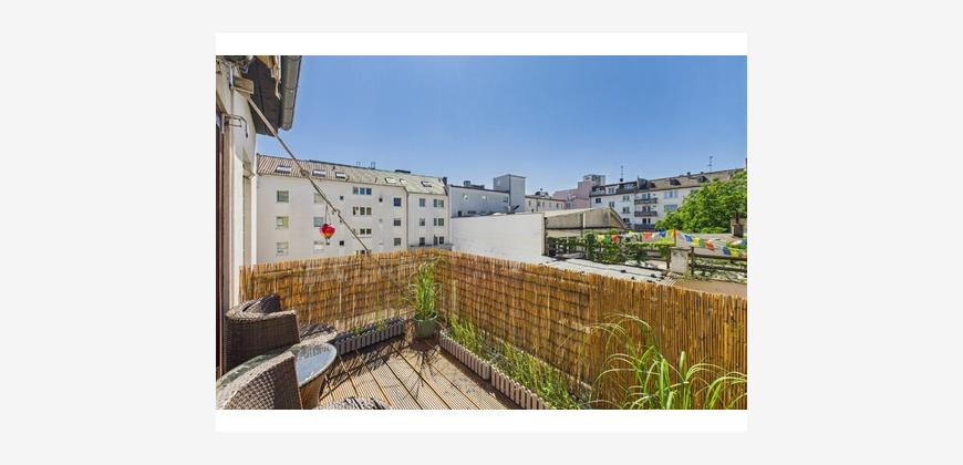 Von hier aus gelangen Sie direkt auf den Balkon, der mit neu verlegten Echtholzdielen ausgestattet wurde und einen schönen Rückzugsort im Freien bietet. Ob entspannte Stunden an der frischen Luft oder ein gemütlicher Start in den Tag – dieser Außenbereich erweitert den Wohnraum auf angenehme Weise. Der Balkon zum Innenhof versprüht mit seinem besonderen Ambiente fast schon italienisches Lebensgefühl.