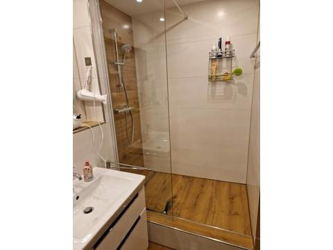 Das moderne Badezimmer wurde im Zuge der Sanierung vollständig erneuert und hochwertig ausgestattet. Es verfügt über eine zeitgemäße Gestaltung und bietet alles, was man für den täglichen Komfort benötigt.