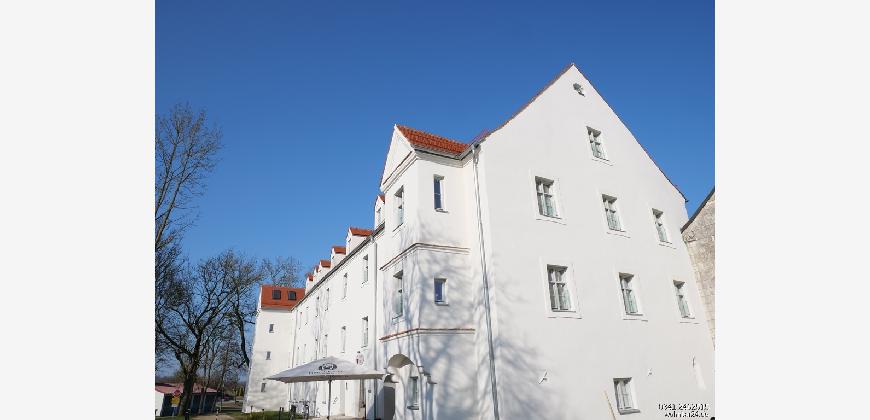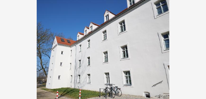HOCHWERTIGE & ENERGETISCHE SANIERUNG. Klosteranlage aus dem Jahre 1132, in 2020 aufwendig saniert. Es sind 50 moderne Wohneinheiten und ein Cafe entstanden. Hier steht die Wohnung 49 im Innenhof zur Vermietung: Eine kleine 2-Raum-Wohnung im Erdgeschoss mit eigener Terrasse. Wohnbereich mit offener Küche inklusive Einbauküche. Zugang vom Wohnzimmer in den Schlafbereich ist offen gestaltet. Einbauschränke im Schlafzimmer vorhanden. In der Wohnung ist Parkett ausgelegt und verfügt über eine Fußbodenheizung. Frei ab sofort. Achtung: Hunde sind vom Eigentümer aus nicht gestattet.