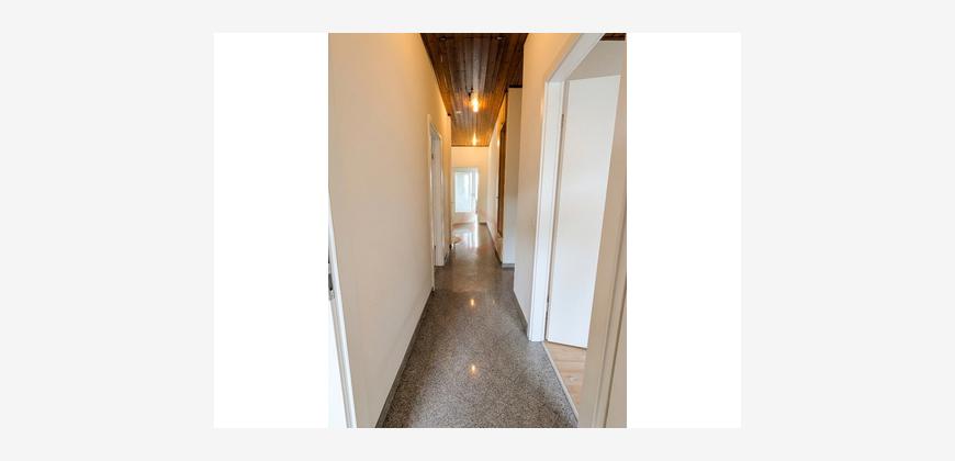 Das Herzstück des Hauses befindet sich im Erdgeschoss, das sich bereits in einem sehr gepflegten Zustand präsentiert. Der Mittelpunkt des Familienlebens ist der großzügige Wohn- und Essbereich. Dank der großen Fensterfront und der optimalen Südausrichtung wird dieser Raum den ganzen Tag über mit Licht durchflutet. Von hier aus haben Sie direkten Zugang auf den sonnigen Balkon, der perfekte Ort für das Frühstück im Freien oder entspannte Abendstunden mit Blick ins Grüne.