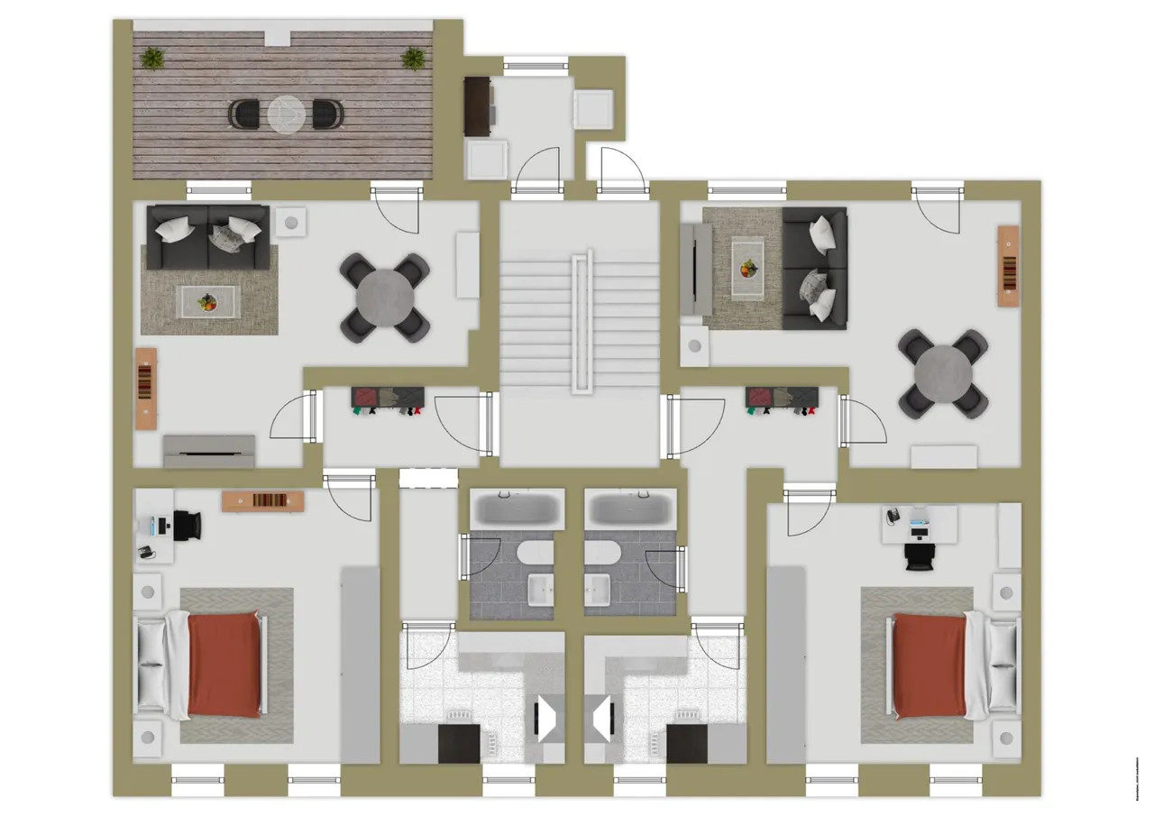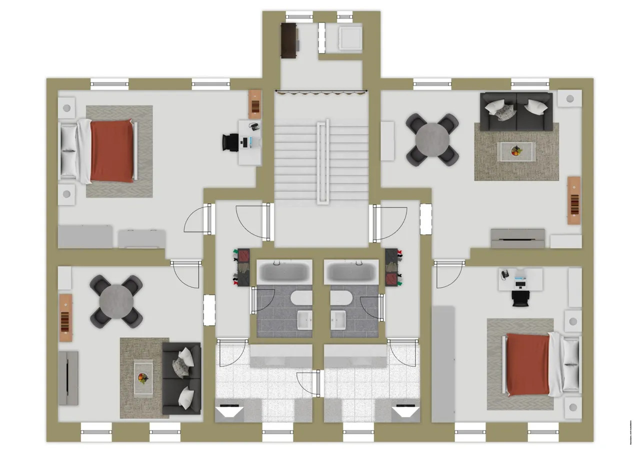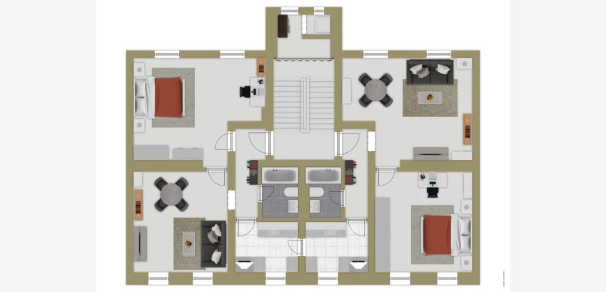 - Dachgeschoss: Möglichkeit zur Schaffung einer ca. 100 m² Wohnung oder zweier Einheiten à 50 m²
