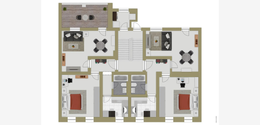 Das Dachgeschoss stellt einen besonderen Vorteil dar: Hier besteht die Möglichkeit, entweder eine großzügige Wohnung mit ca. 100 m² Wohnfläche zu schaffen oder das Dachgeschoss in zwei separate Einheiten von je 50 m² zu unterteilen – eine Option, die das Potenzial für zusätzliche Mieteinnahmen oder eine profitable Veräußerung bietet.