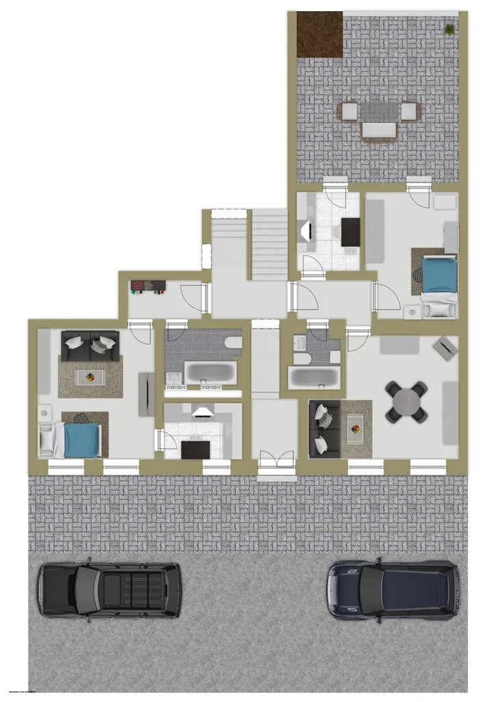 Gesamtwohnfläche: Ca. 275 m², verteilt auf sechs Wohneinheiten (3 Etagen)