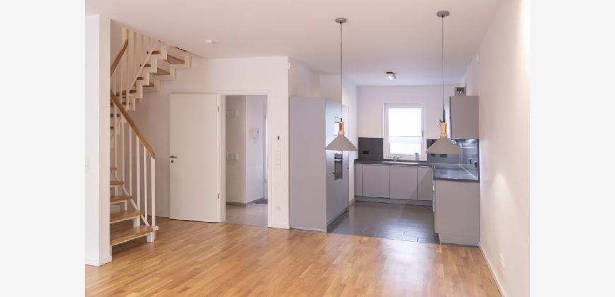 - Erdgeschoss: Offener Wohn- und Essbereich mit moderner Einbauküche, Gäste-WC sowie direktem Zugang zur Terrasse und zum Garten