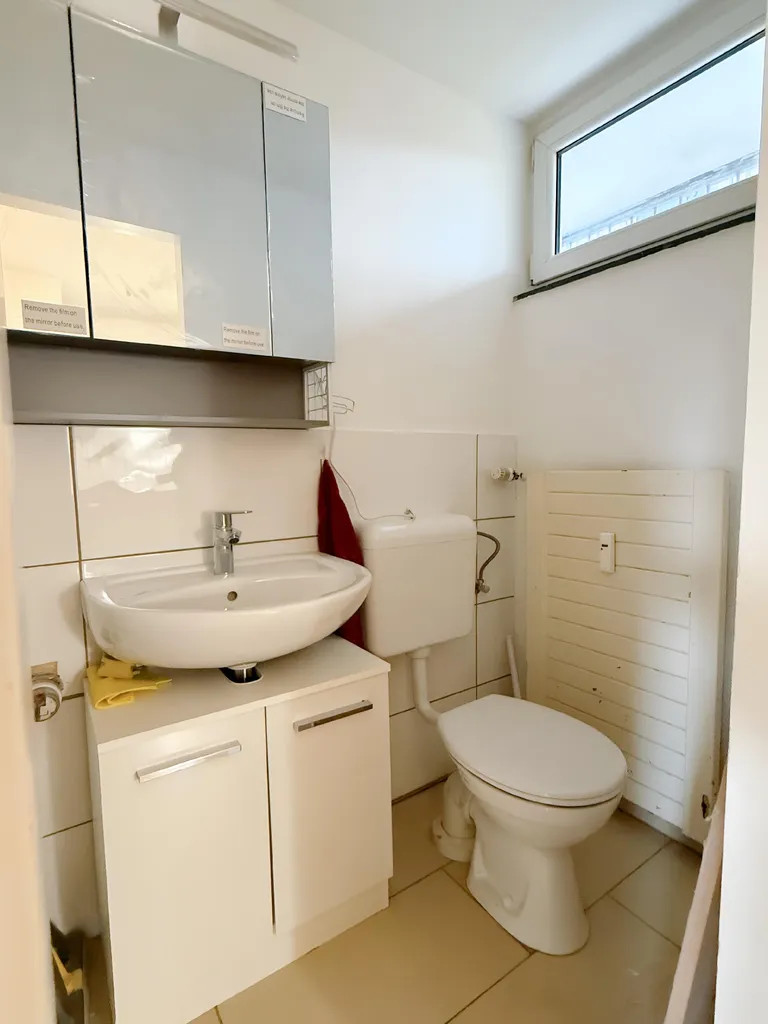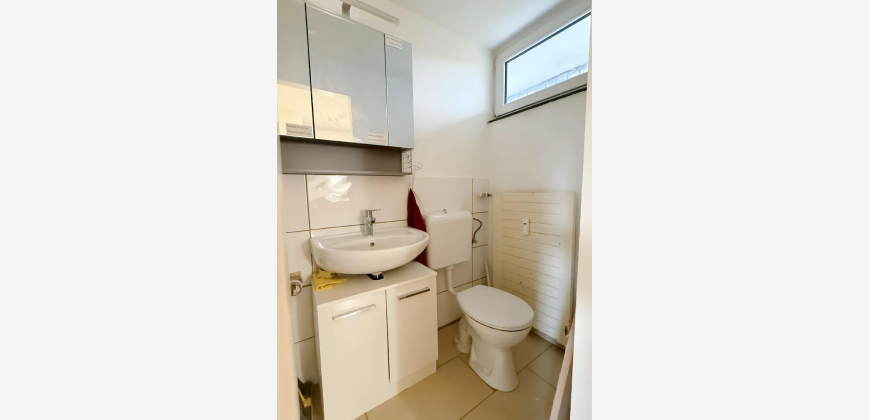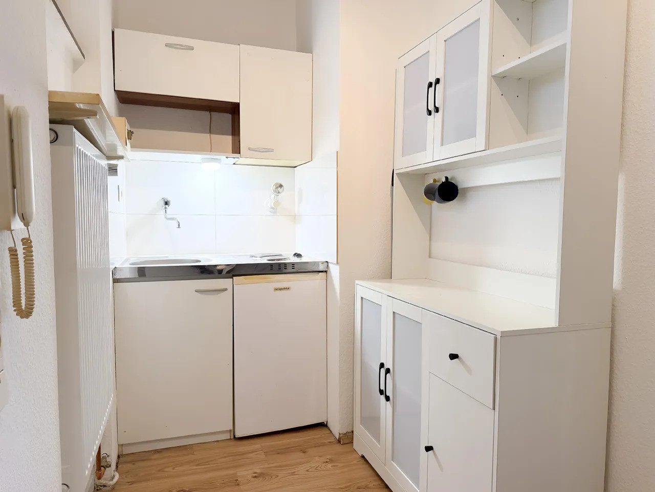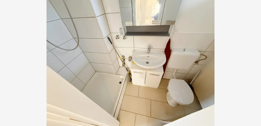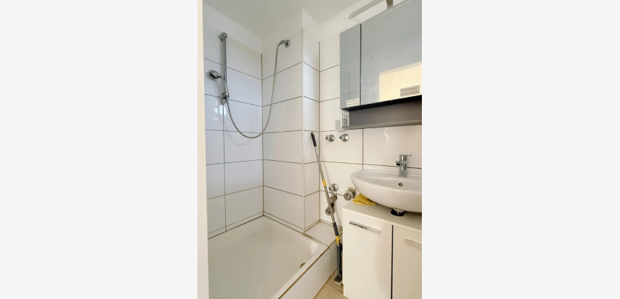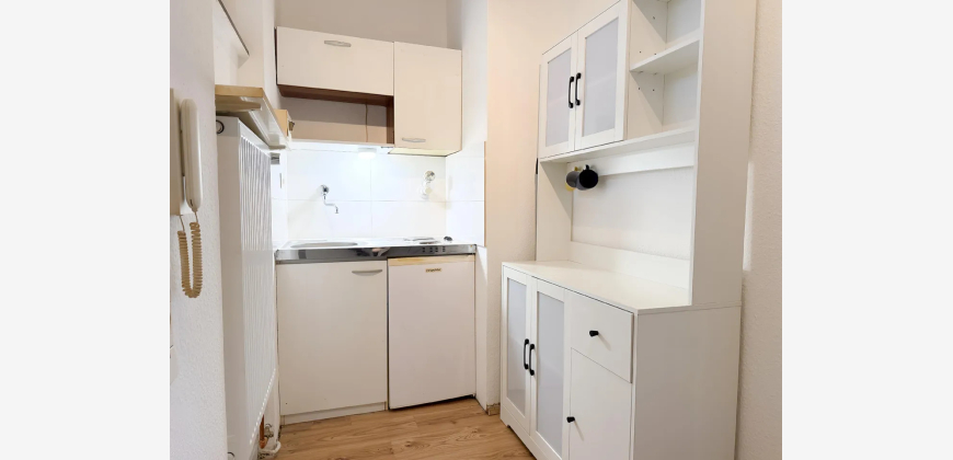 Im Erdgeschoss (Hochparterre) eines gepflegten und ruhigen Hauses ca. aus dem Jahre 1964, befindet sich dieses kleine Apartment. Alle Etagen, einschließlich des Kellers, sind bequem mit dem Aufzug zu erreichen. Auf rund 33 m² verteilen sich ein Wohn-/Schlafraum, eine große Diele mit offener Küche und ein innenliegendes Duschbad sowie ein Balkon. Zur Wohnung gehört ebenfalls ein eigener Kellerraum.