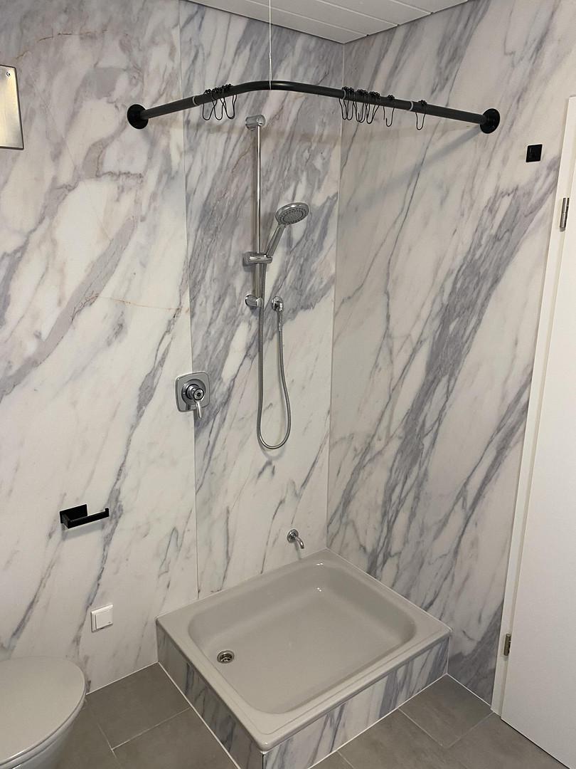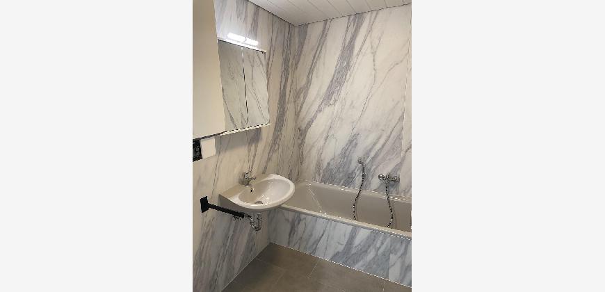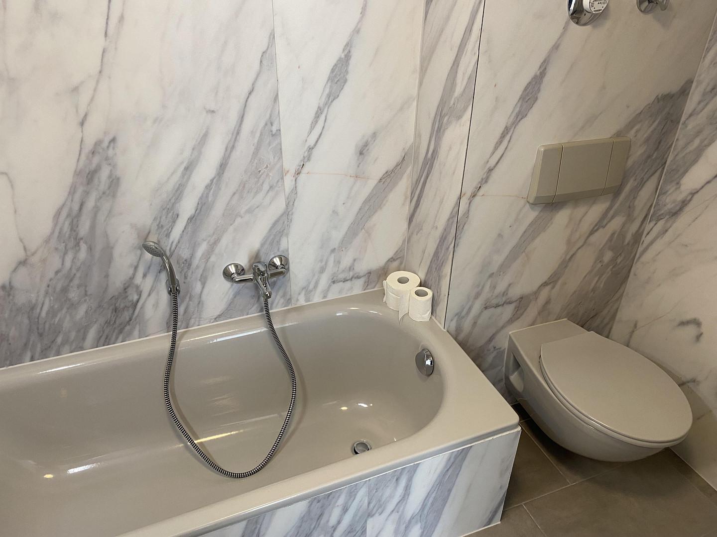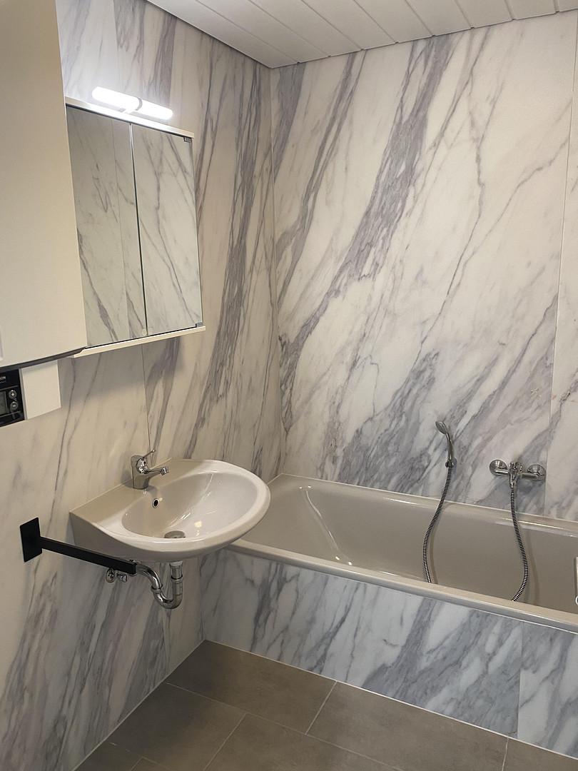 - Bad mit Badewanne und separater Dusche, Spiegelschrank, Waschmaschinenanschluss