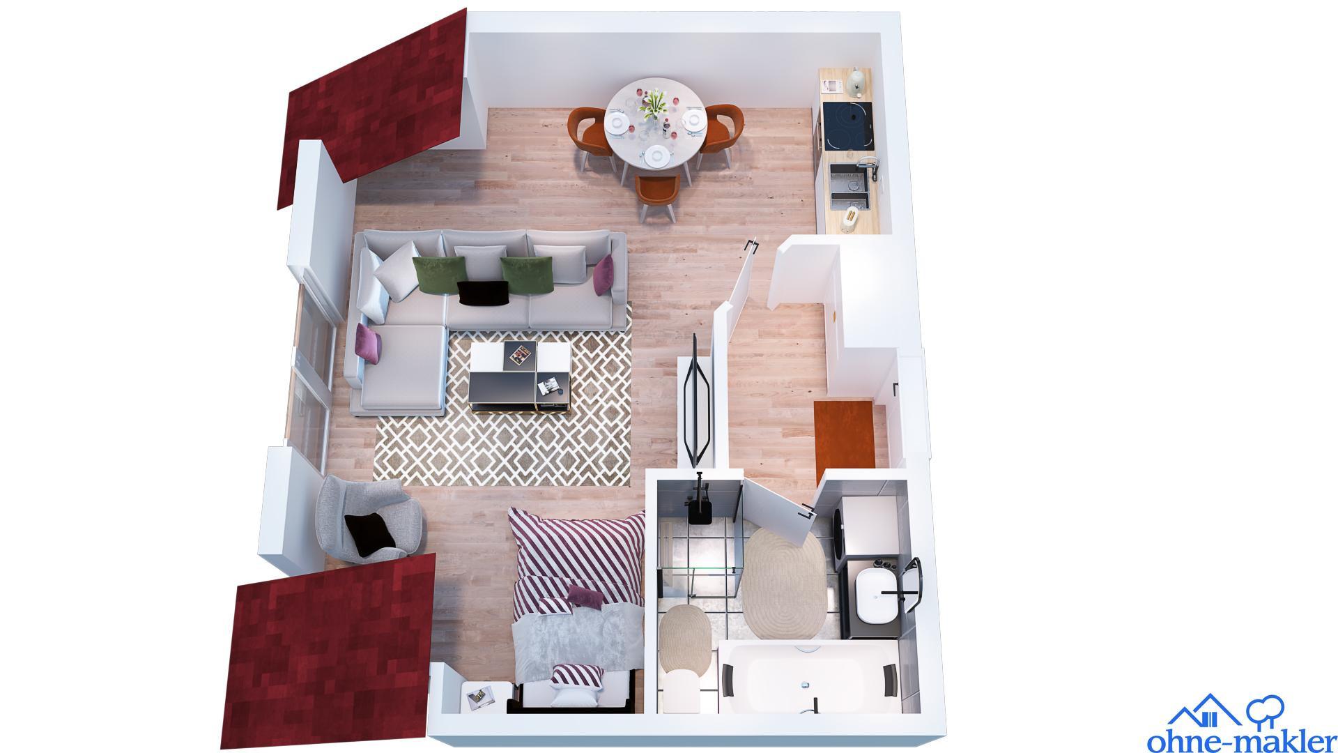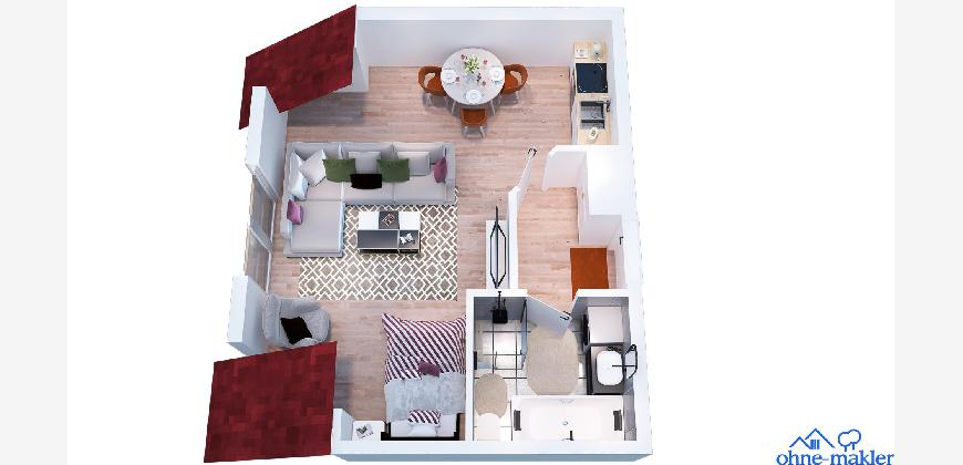 - neue Einbauküche (IKEA): Herd, Backofen, freistehende Kühl-/Gefrierkombination und praktischer Tischgeschirrspüler, in der Kaltmiete bereits enthalten