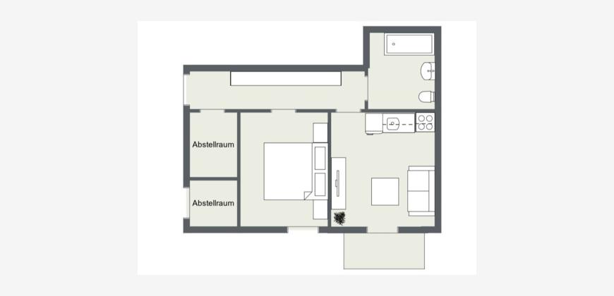 Die Wohnung ist seit 2022 vermietet und erzielt aktuell eine Kaltmiete von monatlich ca. 280 € (seit 01.01.2023).
