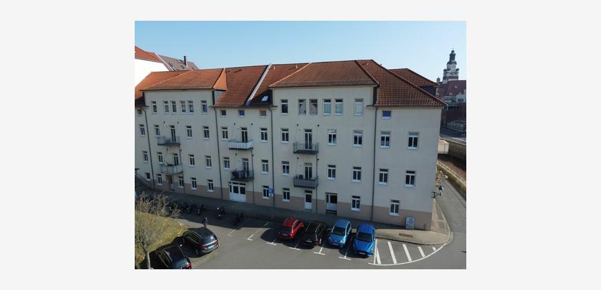 Zum Verkauf steht eine gut geschnittene und gepflegte 2-Zimmer-Wohnung im 2. Obergeschoss eines Mehrfamilienhauses mit insgesamt 24 Wohn- und 4 Gewerbeeinheiten. Das Gebäude wurde ca. 1840 errichtet und 2000 entsprechend saniert. Es verfügt über zwei Hauseingänge und befindet sich auf einem 940 m² großen Grundstück.