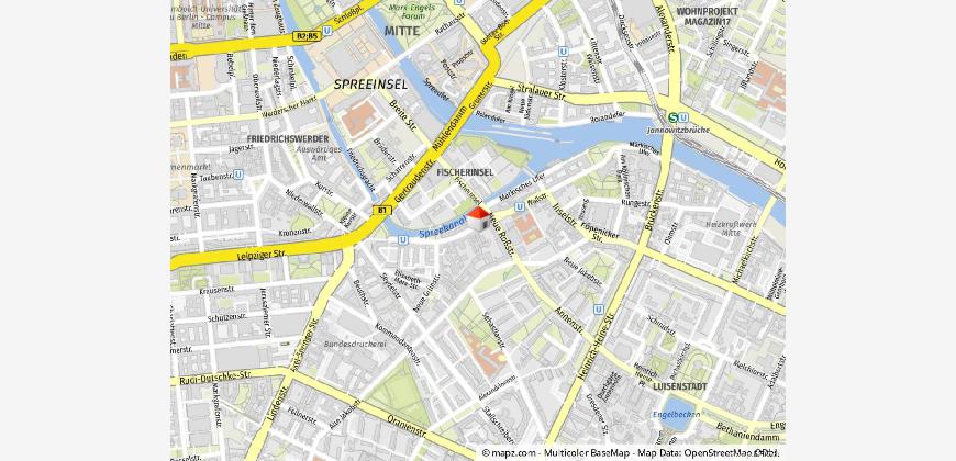 Die Infrastruktur ist ausgezeichnet: Die U-Bahn-Station Märkisches Museum ist fußläufig erreichbar. Ebenso befinden sich das Nikolaiviertel, die Fischerinsel mit Schifffahrtslinienverkehr, der Berliner Dom, das Stadtschloss, die Spree und der Alexanderplatz in unmittelbarer Nähe. Geschäfte des täglichen Bedarfs, zahlreiche Restaurants sowie weitere Anbindungen an den öffentlichen Nahverkehr sind schnell erreichbar.