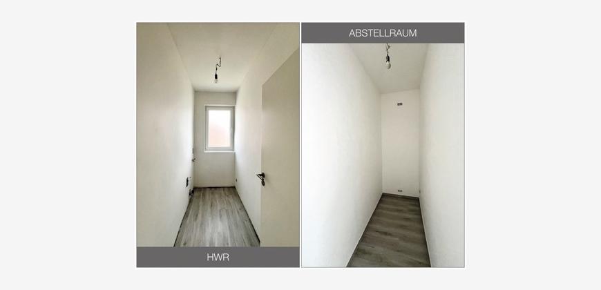 Im Zuge der Modernisierung wurden alle Räume, mit Ausnahme der beiden Schlafräume, mit einem einheitlichen Vinylboden ausgelegt. In den Schlafzimmern wurde bewusst auf einen Bodenbelag verzichtet, um dem Mieter die Möglichkeit zu geben, diesen nach eigenen Vorstellungen zu wählen und zu verlegen. Die Fenster wurden mit elektrischen Rollläden ausgestattet, was den Wohnkomfort zusätzlich steigert.