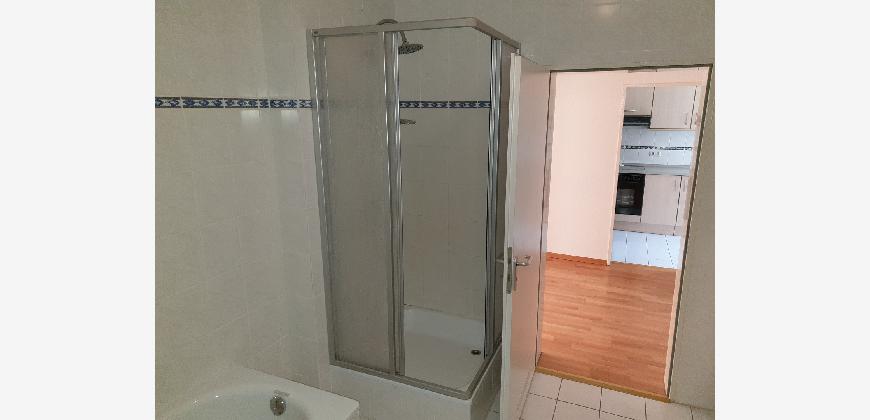 Die Mietwohnung verfügt über ein Badezimmer mit Dusche und Badewanne, Einbauküche, Abstellraum und Türsprechanlage.