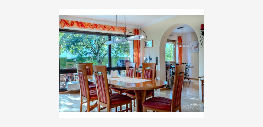 Bei dieser Immobilie handelt es sich um ein Ein- bis Zweifamilienhaus mit zusätzlicher separater Einliegerwohnung in schöner Wohnlage von Bad Reichenhall. Der Anbau mit eigenem Zugang erlaubt die ideale Kombination aus Wohnen und Arbeiten oder als Gästeapartment mit Privatsphäre. Freundlich und lichtdurchflutet mit einem schönen Kachelofen, vermittelt die Immobilie ein großes Maß an Wärme und Behaglichkeit. Details wie z.B. ein praktischer Hauswirtschaftsraum neben der Küche oder die Ankleide beim Schlafzimmer sorgen für zusätzliche Wohnqualität. Die Immobilie ist komplett unterkellert und bietet somit jede Menge Stauraum oder Hobbyräume.