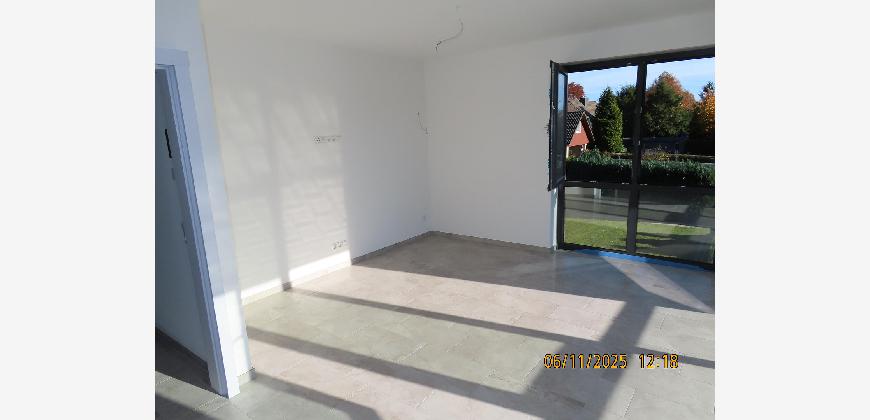 Klinker-Außenfassade, Bad mit Fenster, Massivbauweise, Fliesenboden in allen Räumen, Dreifachverglasung, Fußbodenheizung, offene Küche, 2 x TV und Telefonanschluß (Glasfaser), Netzwerkdosen in jedem Raum mit Patchpanel, Neubau - Erstbezug