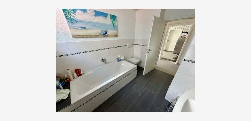 Überwiegend helle, pflegeleichte Fliesenböden in den Wohnbereichen sorgen für ein freundliches Raumklima. Schönes Terrazzo-Treppenhaus, auch die Loggia im Obergeschoss wurde mit neuen Fliesen belegt.