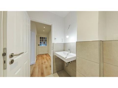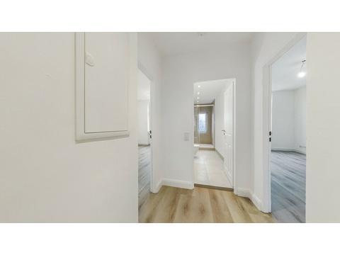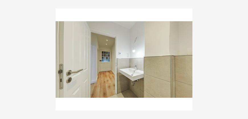 Die Wohnung wurde vollständig und hochwertig saniert. Sämtliche Elektro- und Wasserleitungen und Bodenbeläge sind erneuert worden, wodurch ein zeitgemäßer Wohnstandard gewährleistet ist. Das Badezimmer wurde komplett modernisiert und mit einer bodengleichen, begehbaren Dusche sowie einer Fußbodenheizung ausgestattet. Hochwertige Armaturen, geschmackvolle Fliesen und ein Fenster für Tageslicht und natürliche Belüftung schaffen hier ein ansprechendes, frisches Ambiente.