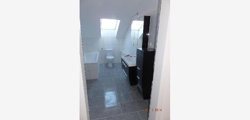 Das Badezimmer ist mit hochwertigen Badmöbeln ausgestattet, die sich sehr schön integrieren und eine Wohlfühloase schaffen.