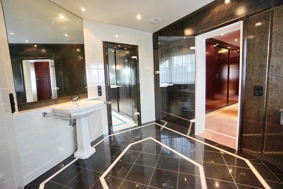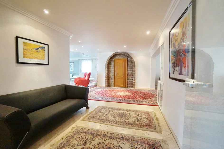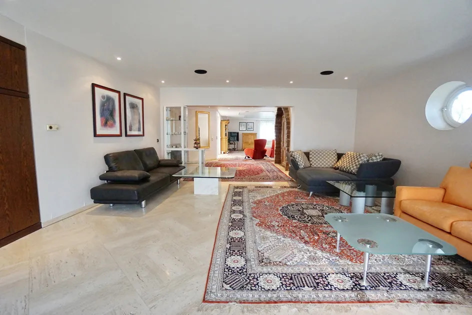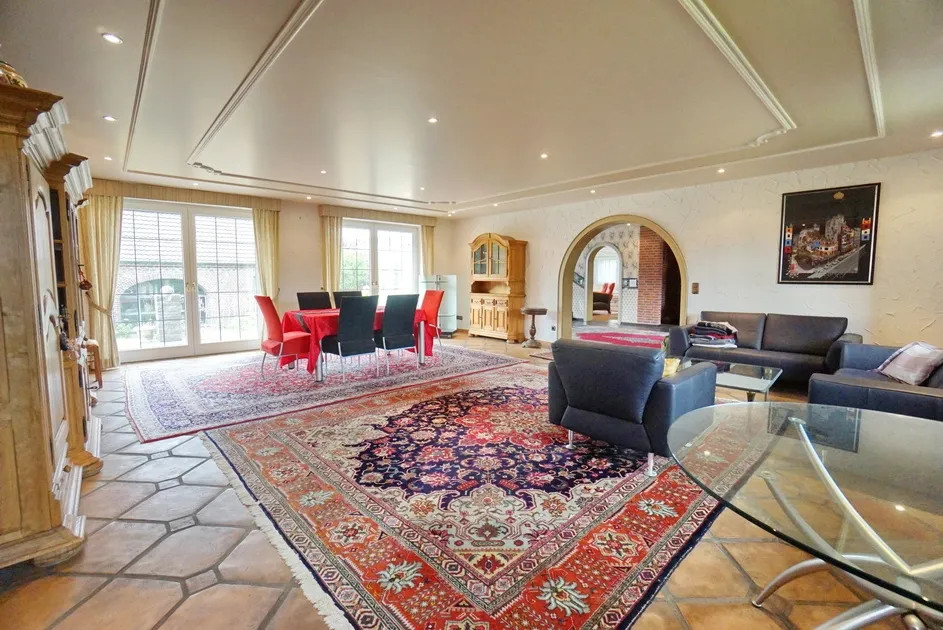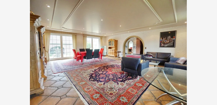 In einem gewachsenen Wohngebiet der Ortschaft Issum-Sevelen liegt dieses Familienanwesen aus dem Baujahr 1980. Dieses geräumige Anwesen mit ca. 522 m² Wohnfläche erstreckt sich über zwei Wohnetagen. In massiver Bauweise, mit Klinkerfassade finden Sie hier eine Symbiose aus rustikaler und moderner Note. Der imposante Eingangsbereich mit einem herrschaftlichen Treppenhaus im kleinen Zwiebelturm zieht sofort alle Blicke auf sich. Bereits hier lässt sich erahnen, welche Großzügigkeit diese Immobilie bietet. Viele Fenster und zahlreiche bodentiefe Terrassenelemente sorgen für lichtdurchflutete Räume, die sich ideal für verschiedene Stilarten eignen. Mit mehreren Schlafzimmern, Ankleidezimmern und Bädern ist dieses Haus perfekt für mehrere Generationen geeignet. Zur Nutzung als Zweifamilienhaus steht ein separater Eingang zur Verfügung. Dieser Bereich ist auch als Bürofläche ideal geeignet, sodass Sie Arbeit und Privatleben perfekt kombinieren können. Die offene Raumgestaltung ermöglicht es Ihnen, Ihre individuellen Vorstellungen zu verwirklichen und kreative Arbeitsbereiche zu schaffen. Die Immobilie ist voll unterkellert. Der großzügige Keller bietet Ihnen zusätzlich viel Platz für Hobbys, Lagerräume oder sogar einen Fitnessbereich. Zudem finden Sie hier einen sanierungsbedürftigen Poolbereich mit Sauna. Die Ausstattung der Immobilie befindet sich im baujahrestypischen Zustand und Stil der 1980er Jahre. Auch Innenarchitektonisch sind diese Stilelemente erkennbar. Die Immobilie ist mit einer Fußbodenheizung ausgestattet, welche über die Gaszentralheizung beheizt wird. Auf dem ca. 2.380 m² großem Grundstück steht ein Scheunengebäude, welches als Garagenhaus und praktische Nutzfläche für Gartengeräte dient. Insgesamt bietet das großzügige Grundstück zahlreiche individuelle Gestaltungsmöglichkeiten. Wir möchten die neuen Eigentümer der Immobilie darauf hinweisen, dass der Grundwasserstand in der Gemeinde hoch ist. Auch die hier angebotene Immobilie ist davon betroffen. Es sind Grundwasserpumpen installiert, die in dauerhafter Bereitschaft stehen, damit das anstehende Wasser abgepumpt werden kann. Aufgrund eines Pumpenausfalls kam es in der Vergangenheit zu einem Wasserschaden im Keller. Erleben Sie die besondere Kombination aus Eleganz und Funktionalität in diesem einzigartigen Zuhause, das darauf wartet, mit Leben gefüllt zu werden. Bitte haben Sie Verständnis dafür, dass sich diese außergewöhnliche Immobilie nicht vollständig in Worten beschreiben lässt! Sehr gerne stehen wir Ihnen für Fragen und einen Besichtigungstermin zur Verfügung.