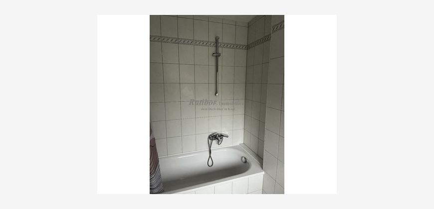 Es sind 2 Schlafzimmer vorhanden. Das helle TGL-Bad verfügt über Wanne und Waschtisch - das WC ist separat. Ein kleiner Einbauschrank im Vorraum dient als Abstellraum. Durch eine Wandöffnung vom Esszimmer aus fällt Tageslicht in den dahinter liegen Flur. Die vorhandene moderne EBK mit Spülmaschine gehört zur Wohnung und ist bereits im Mietpreis enthalten.