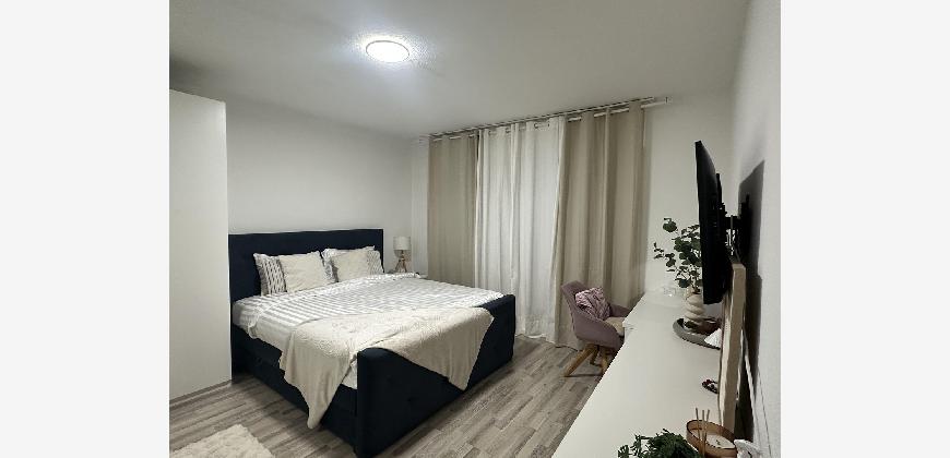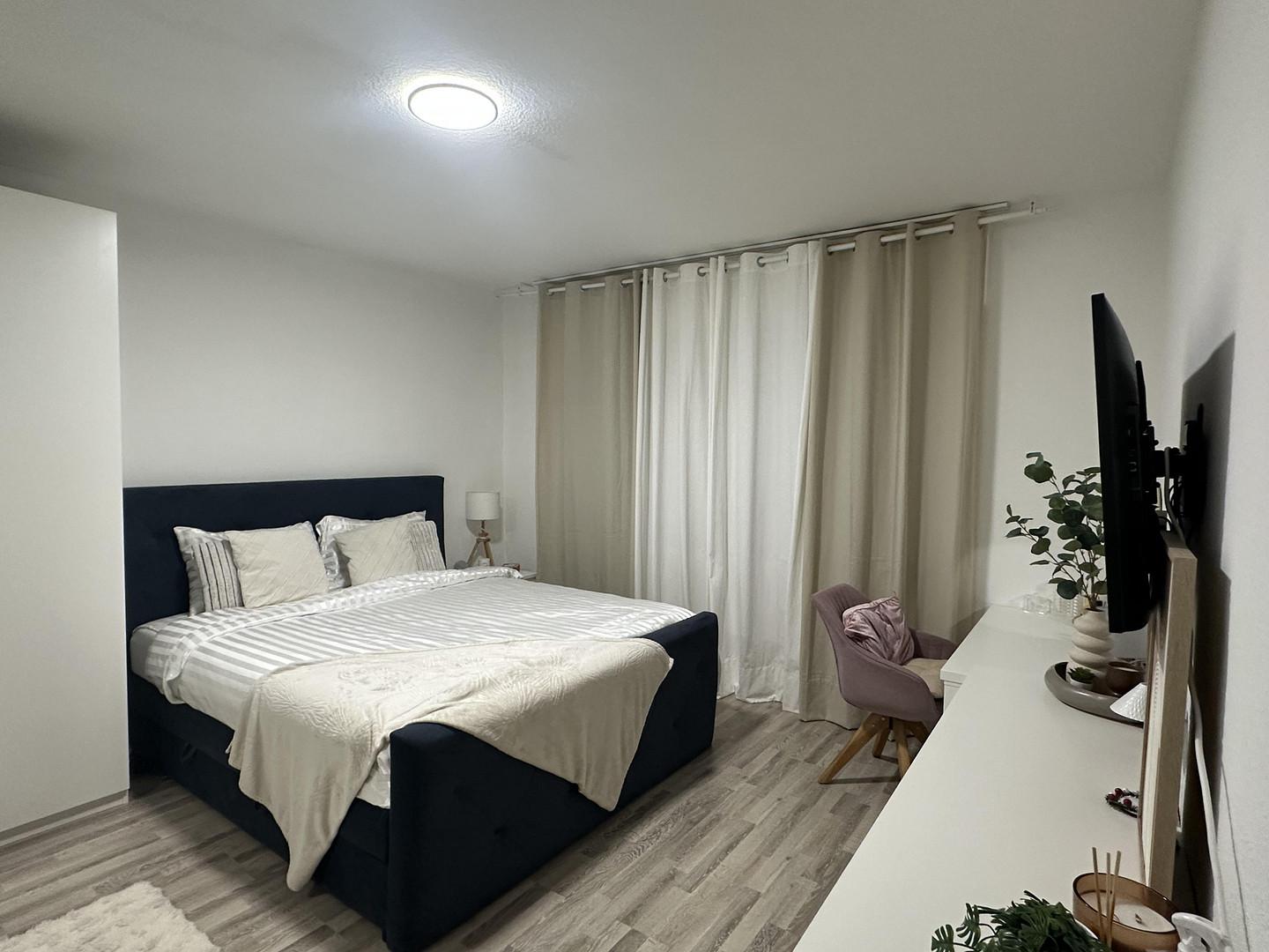 Die Wohnung ist, mit Ausnahme des Schlafzimmers und des Gäste-/Kinderzimmers, mit grauem Granit ausgelegt. Schlafzimmers und das Gäste-/Kinderzimmer sind mit grauem Laminat ausgelegt.