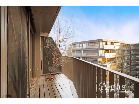 Hochwertiges Eichenparkett mit Fußbodenheizung, eine großzügige Fensterfront mit Balkon und die schicke Einbauküche...