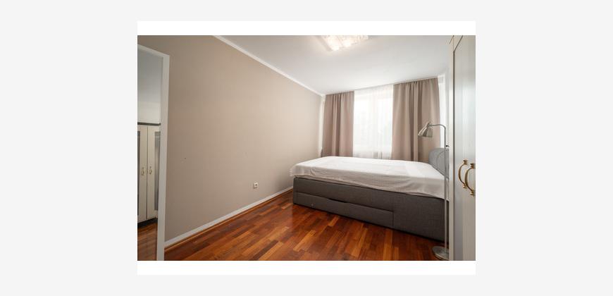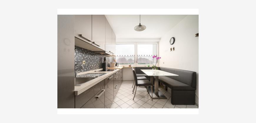Die Wohnung selbst ist in einem wunderbar gepflegtem Zustand. Die Wohnfläche ist vollständig mit hochwertigen Parkett ausgelegt. Eine große Einbauküche befindet sich zur Rechten des Eingangs. Die Elektroausstattung ist vollwertig vorhanden.