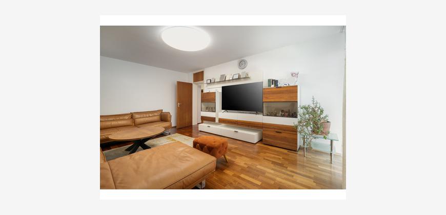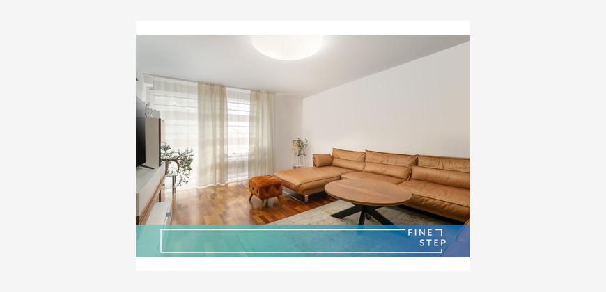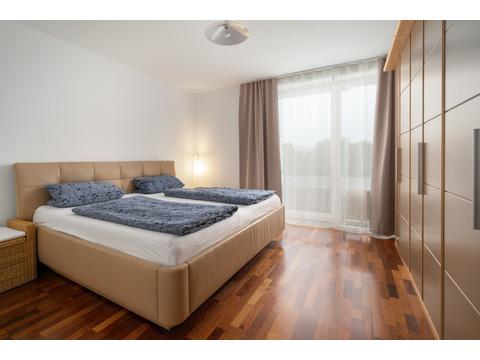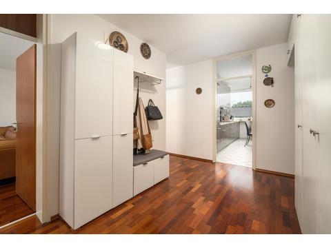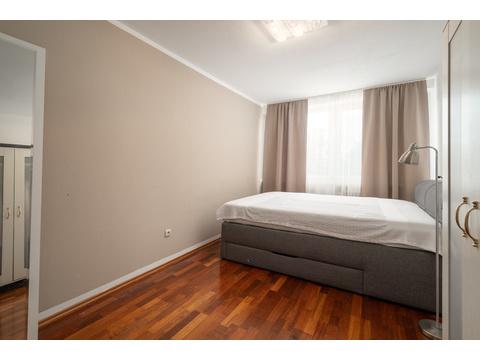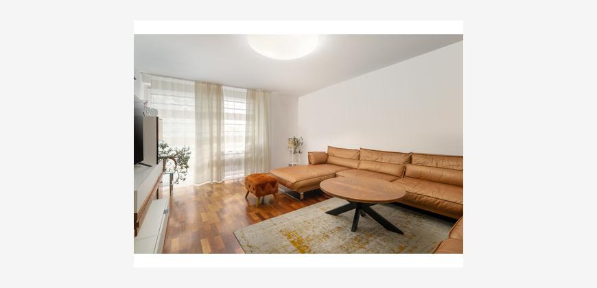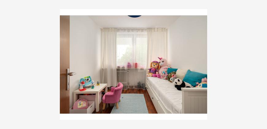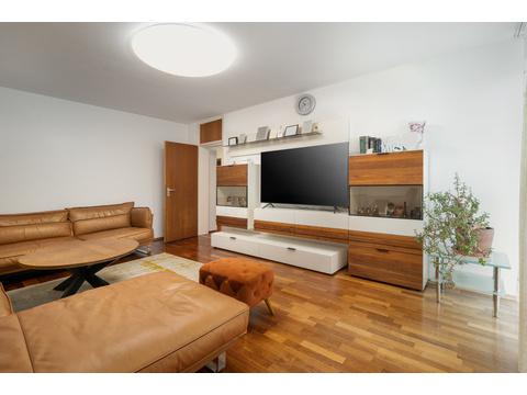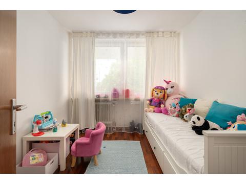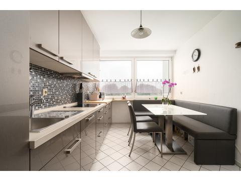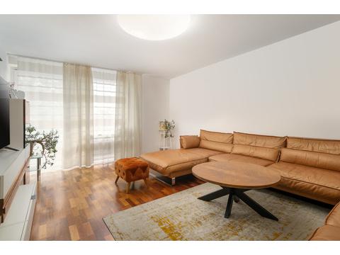 Aufgrund der bodentiefen Fenster im Wohnzimmer und des edlen Parkettböden ist die Wohnung ein wahres Licht- und Komfortwunder. Dazu tragen auch die zwei Balkone bei: Ein großer Südostbalkon sowie ein kleinerer Nordwestbalkon bieten beide einen Blick ins Grüne und viel Ruhe.