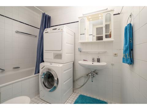 - Großes Badezimmer mit Wanne, Waschbecken, Handtuchheizkörper und WC