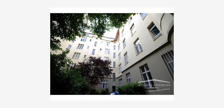 Diese charmante Altbauwohnung überzeugt durch ihre großzügige Aufteilung, hohe Decken und eine ruhige Lage im weitläufigen Innenhof. Mit ca. 99,9 m² Wohnfläche bietet sie reichlich Platz für Familien oder für alle, die urbanes Wohnen in einer der zentralsten Gegenden Berlins mit hohem Wohnkomfort verbinden möchten. Alle Räume sind über den Flur erschlossen und nach Süden ausgerichtet. Gleich zu Beginn erwartet Sie ein Schlafzimmer mit ca. 16 m². Direkt daneben befindet sich das erste Badezimmer, das mit einer Badewanne ausgestattet ist – perfekt für entspannte Stunden. Beide Bäder sind zeitlos halbhoch gefliest. Das Herzstück der Wohnung ist das eindrucksvolle Wohnzimmer mit rund 40 m². Die großzügige Deckenhöhe von ca. 3,60 m und die hohen Fenster verleihen dem Raum eine besondere Weite und Helligkeit. Hier schafft das Zusammenspiel aus klassischem Altbauflair, viel Tageslicht und Blick in den ruhigen Innenhof eine einzigartige Atmosphäre.