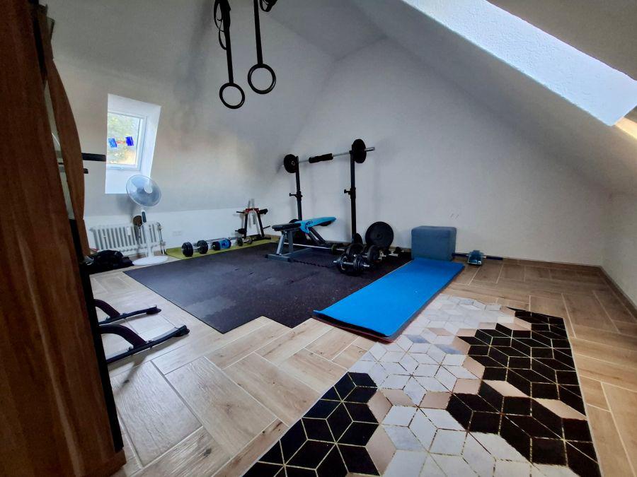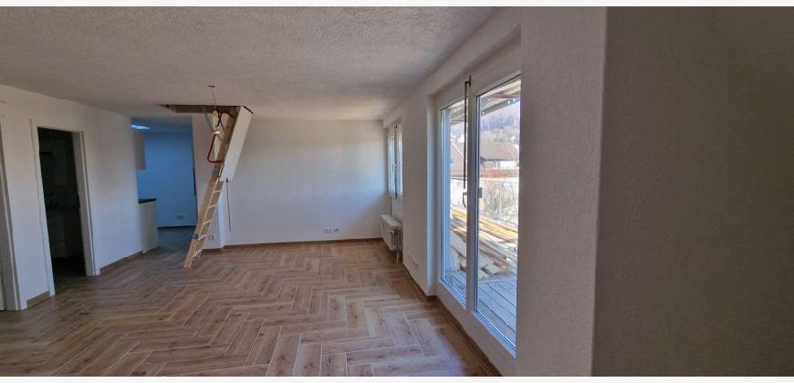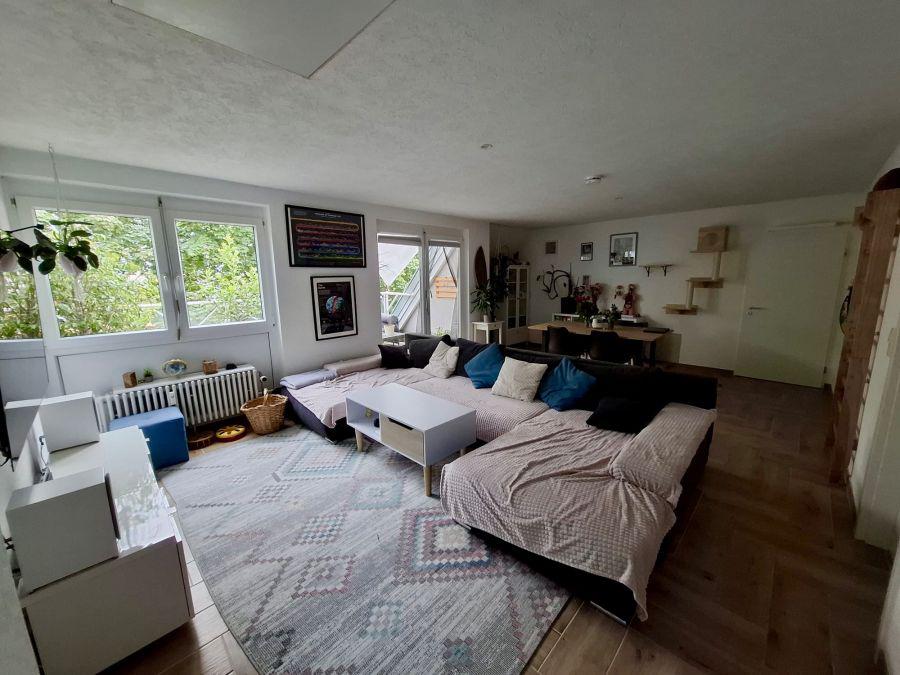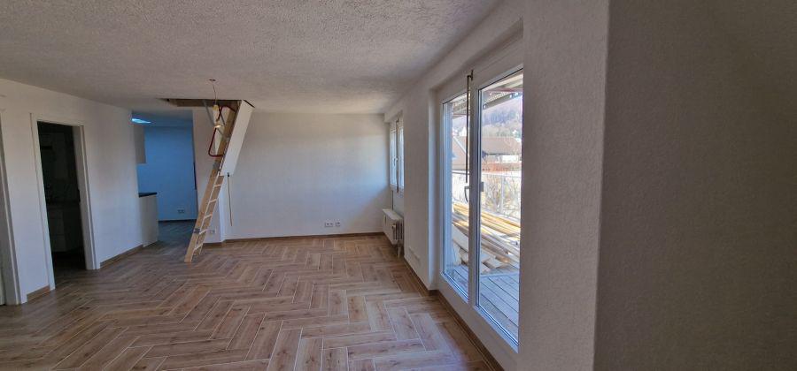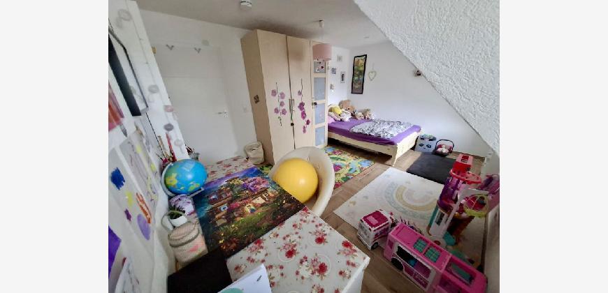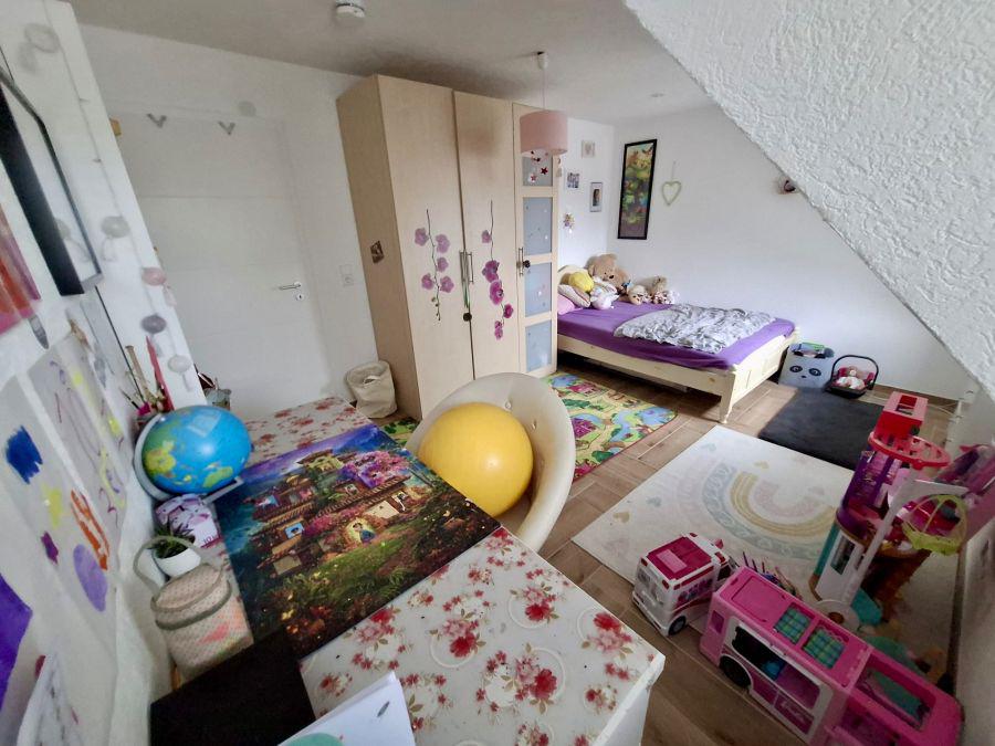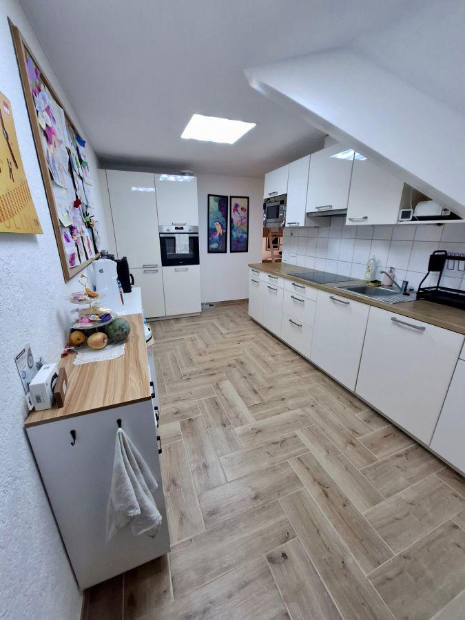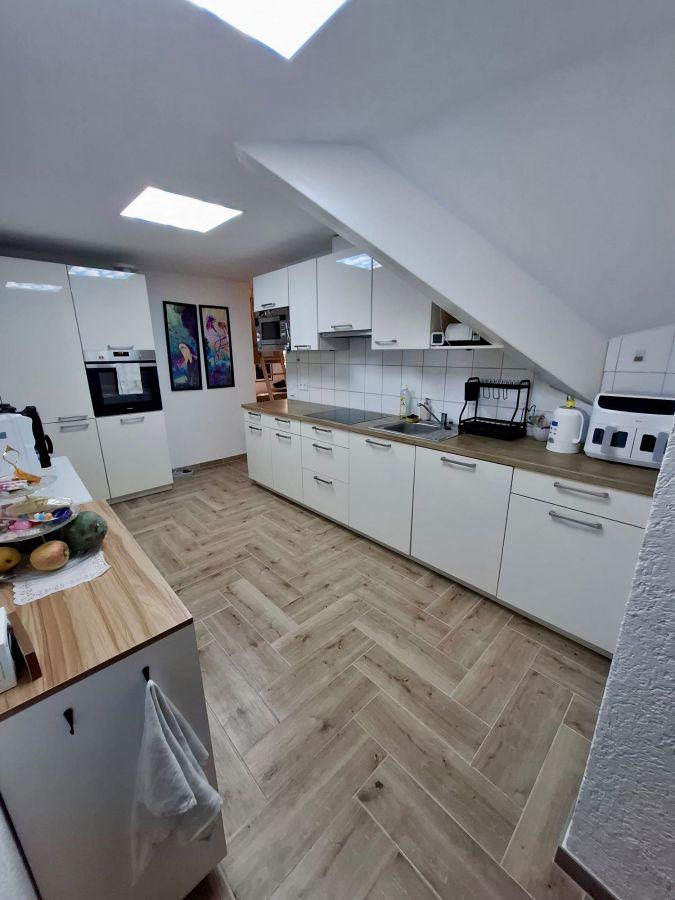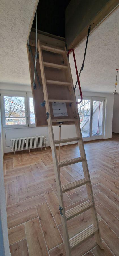 Von der Küche aus kommen Sie direkt ins offene grosse Wohnzimmer incl. der Treppe, welche Sie in den ca. 35 m2 Grundfläche Dachspeicher führt.