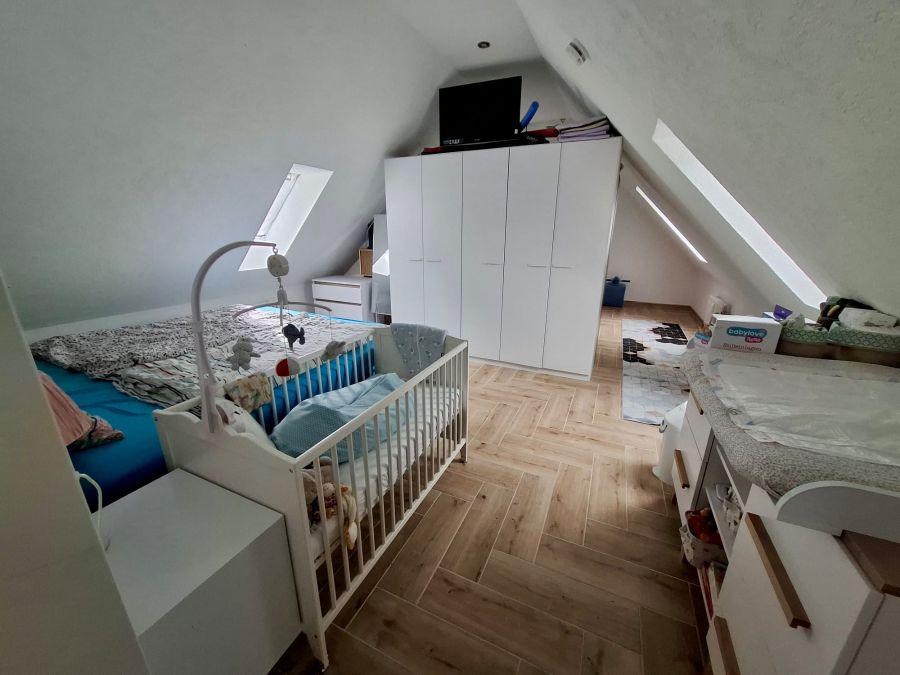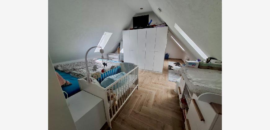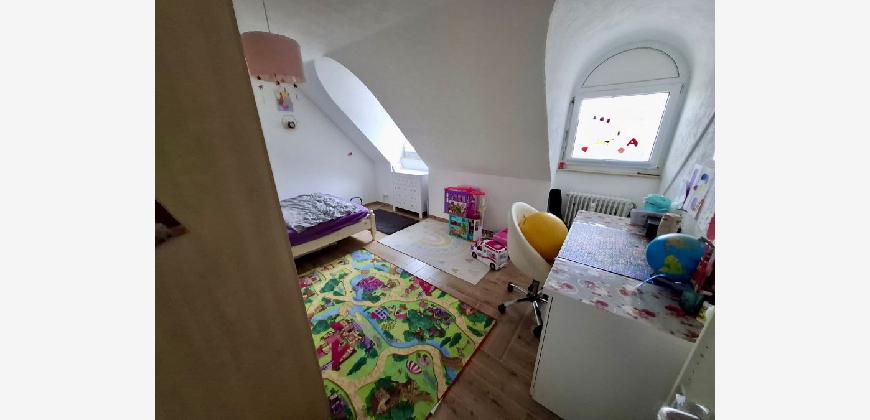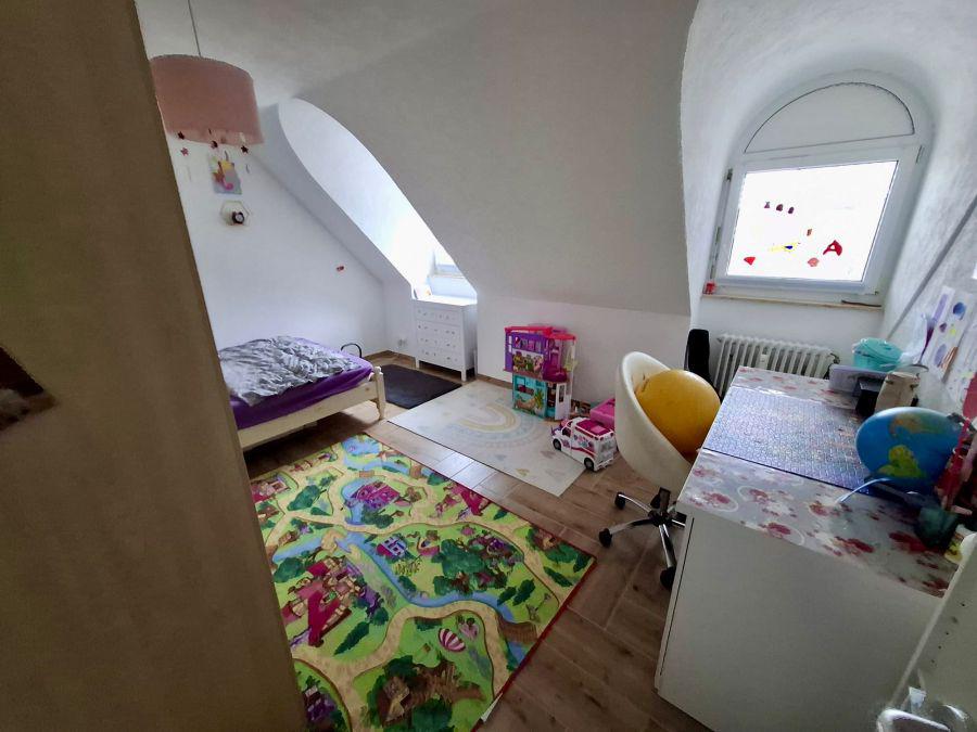 Ebenfalls vom Wohnzimmer erreichen Sie den ca. 12m2 grossen Balkon und das kleinere ca. 16m2 grosse Schlafzimmer sowie das XL Schlafzimmer mit Dachschräge und einer Grundfläche von ca. 38m2!!!