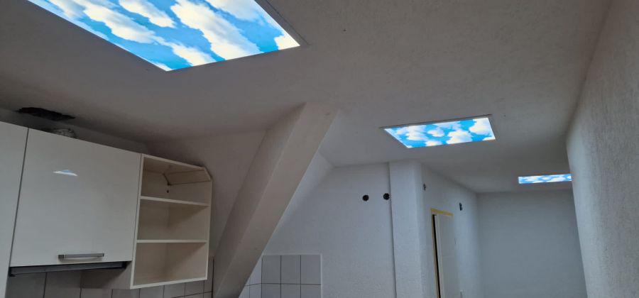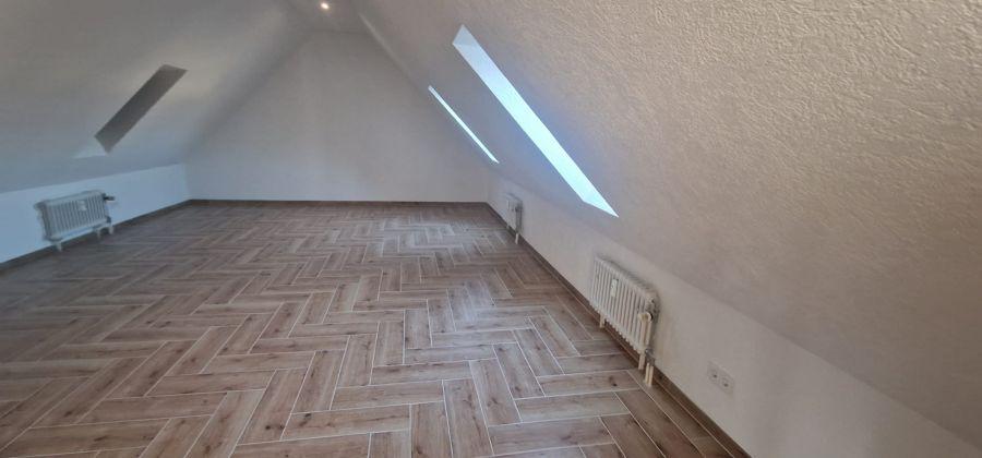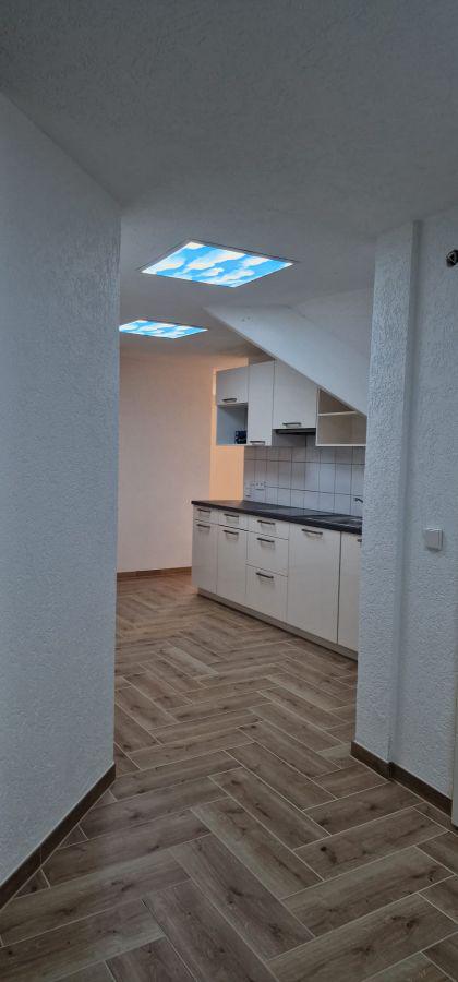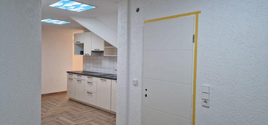 Über eine extrabreite Eingangstür und Flur betreten Sie die komplett neu sanierte und renovierte Dachgeschosswohnung mitsamt einem Zugang zum Dachspeicher vom Wohnzimmer aus!!!