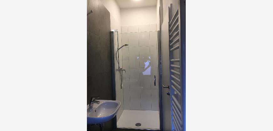 Badezimmer ist mit einer ebenerdigen Dusche,