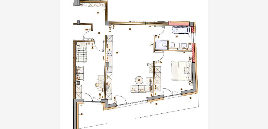 Badewanne, Dusche, Tageslichtbad, Fußbodenheizung, Einbauküche, Aufzug, Stellplatz, bodentiefe Fenster, Balkon, Neubau, Erstbezug, Gäste WC.