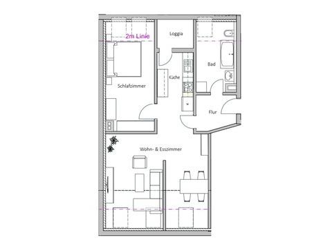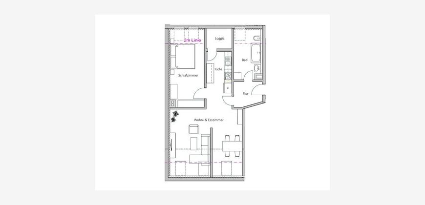 Die separate Küche bietet ausreichend Platz und Möglichkeiten, um Ihre kulinarischen Ideen zu verwirklichen, während die direkt anliegende Loggia zum Verweilen im Freien einlädt.