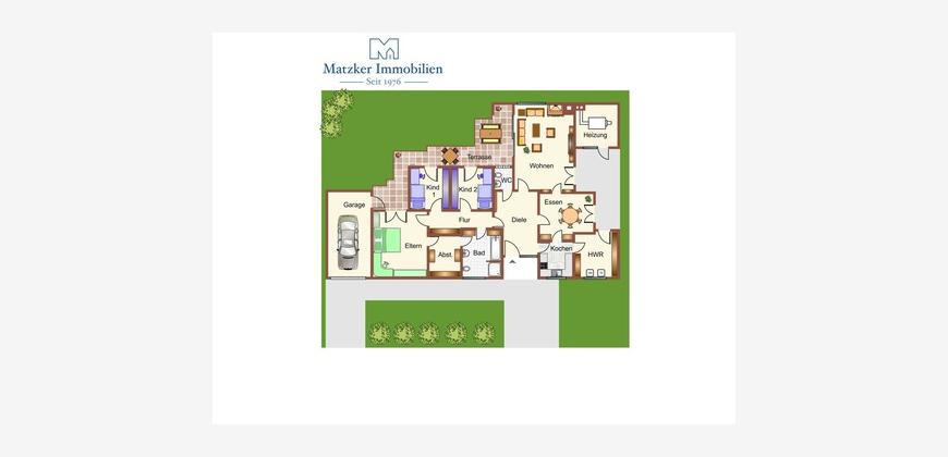 In guter und ruhiger Lage von Steinfurt befindet sich dieser äußerst gepflegte Bungalow. Die ca. 120 m² Wohnfläche verteilen sich auf Eingangsbereich, Küche, Wohnzimmer, Bad mit WC und Dusche, Arbeitszimmer, Durchgangszimmer, Schlafzimmer und Gäste-WC.