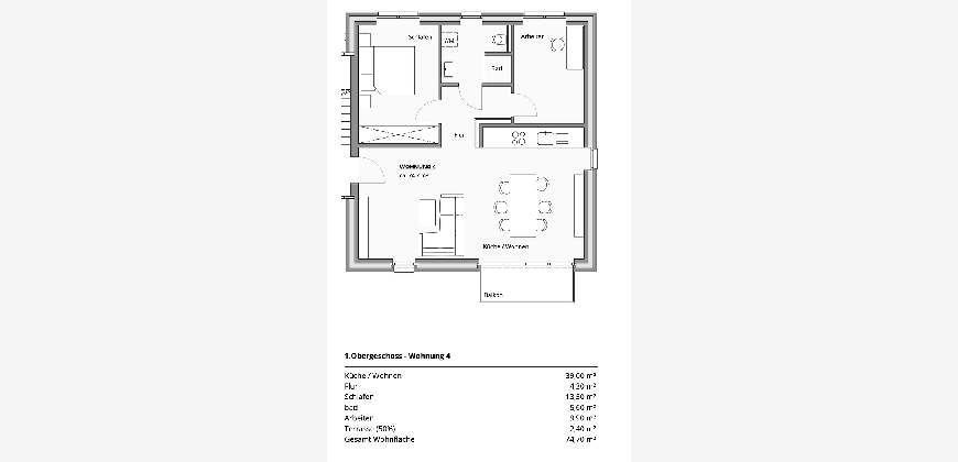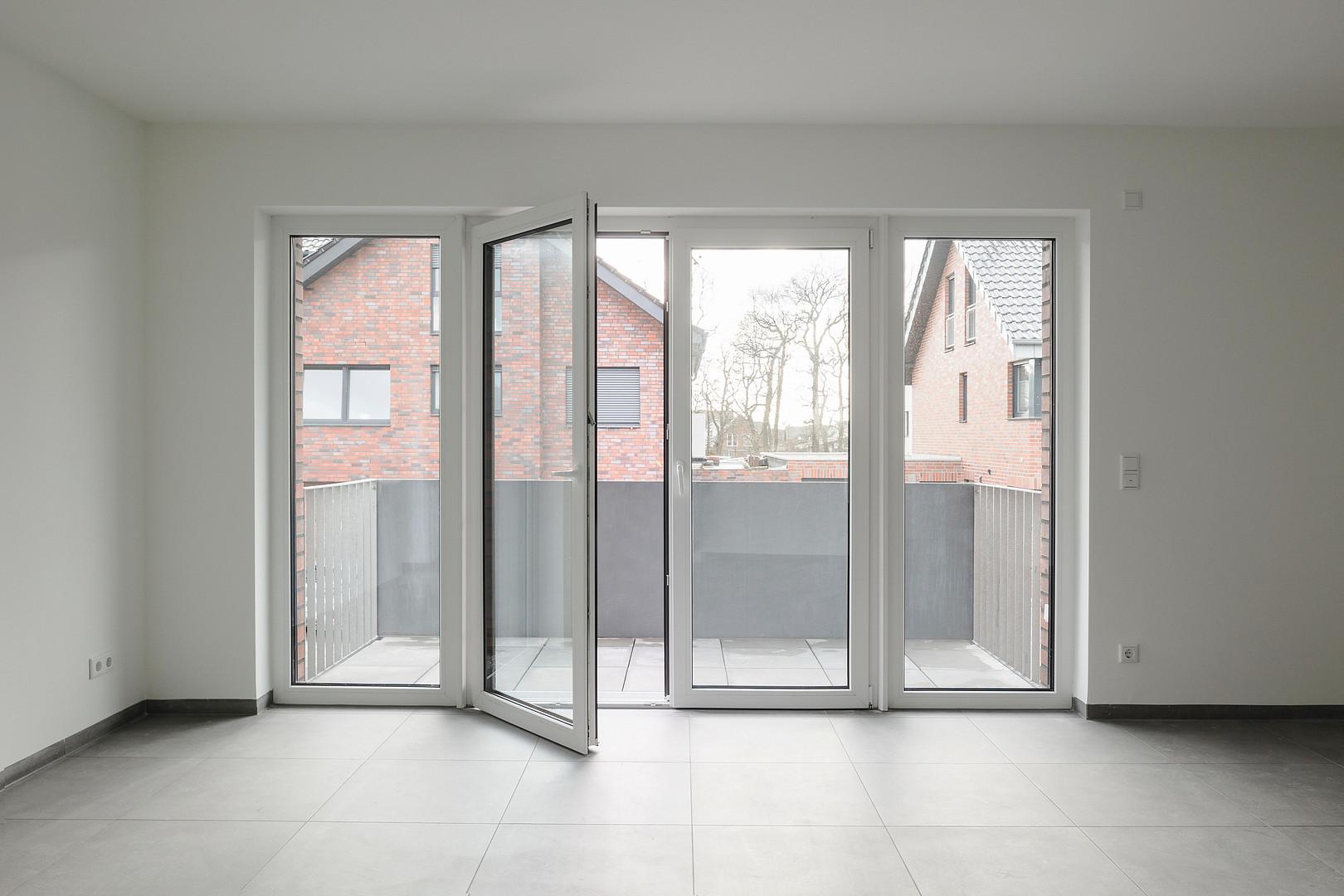 - Offener Wohn‑/Essbereich (Südausrichtung) mit Balkon/Terrasse