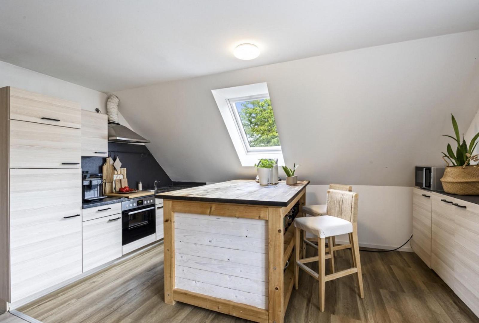 Die Wohnung befindet sich in einem gepflegten und zeitgemäßen Zustand. Der Ausbau vor ca. 6 Jahren sorgt für eine moderne Wohnqualität mit hellen, freundlichen Räumen. Die vorhandene Einbauküche bietet eine solide Grundausstattung für den täglichen Bedarf. Das Badezimmer ist funktional gestaltet und mit einer Badewanne ausgestattet. Insgesamt überzeugt die Wohnung durch eine praktische Raumaufteilung und ein angenehmes Wohngefühl.