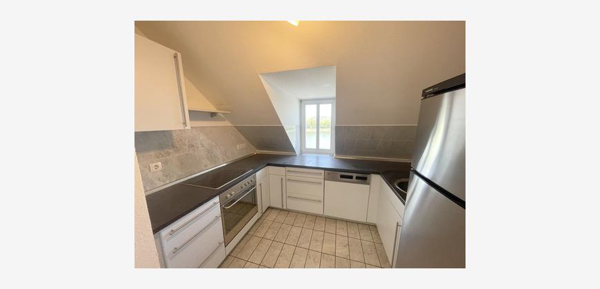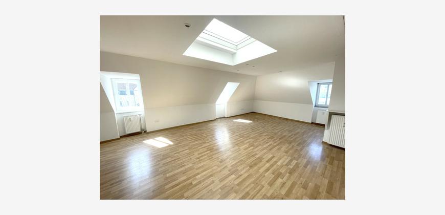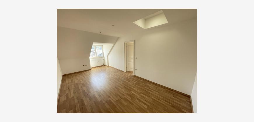 Der offen gestaltete Wohn- und Essbereich bildet das Herzstück der Wohnung und schafft durch die offene Küche eine moderne, kommunikative Atmosphäre. Eine vorhandene Einbauküche ist bereits integriert und bietet eine praktische Grundlage für den direkten Einzug. Das Schlafzimmer ist angenehm dimensioniert und ermöglicht eine ruhige Rückzugsmöglichkeit. Das Badezimmer ergänzt das Raumangebot funktional und zeitlos, mit Dusche und Badewanne. Ein Gäste-WC findet sich ebenfalls auf der Wohnebene.