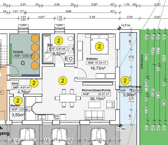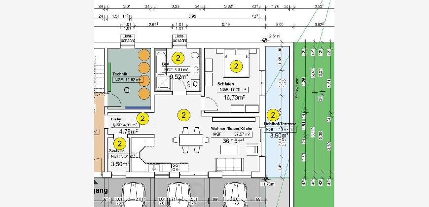 2 Zi. Neubauwohnung (Nr. 2) im UG (ebenerdig) mit Terrasse
