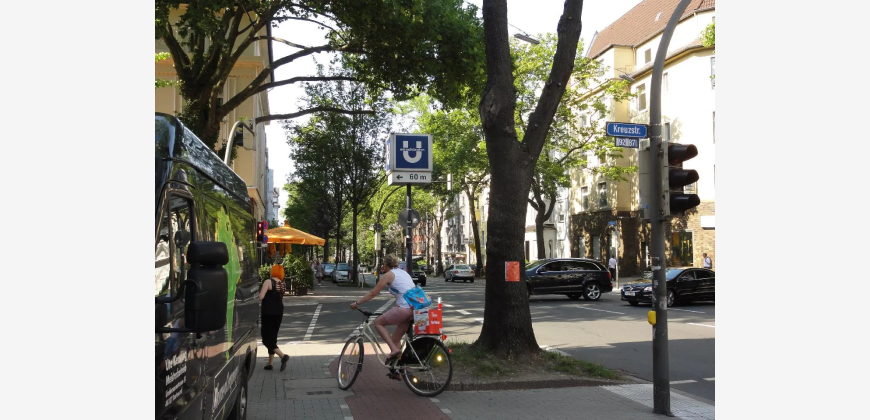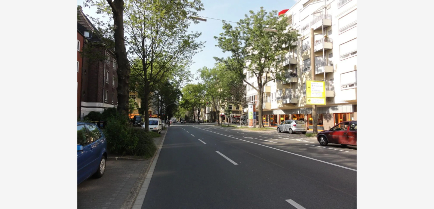 Sehr gute Anbindung an die B1, A40 gegeben, sowie öffentliche Verkehrsmittel, Buslinien 452, 453, E452, E453, NE8, sowie U-Bahnlinie 442 sind fußläufig erreichbar.