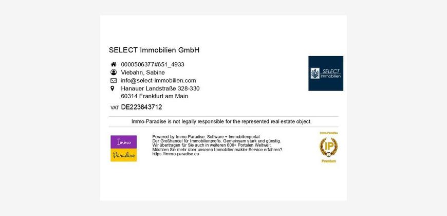 LagebeschreibungSachsenhäuser Berg - Kindergarten in der Nähe - Einkaufsmöglichkeiten: div. Geschäfte in Laufnähe - Anbindung: Bushaltestelle 140 m / S- und U-Bahn 1,7 km / Stadtwald 140 m / Flughafen 9,7 km