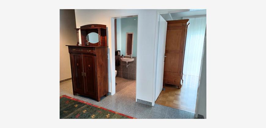 AusstattungDie angebotene Wohnung in einem 3-Familienhaus ist derzeit geteilt in eine 4-Zimemrwohnung (möbliert), mit ca. 105 m² und eine 1-Zimmmerwohnung (möbliert), ca. 25 m². Die Wohnungen verfügen über einen eigenen Eigang.